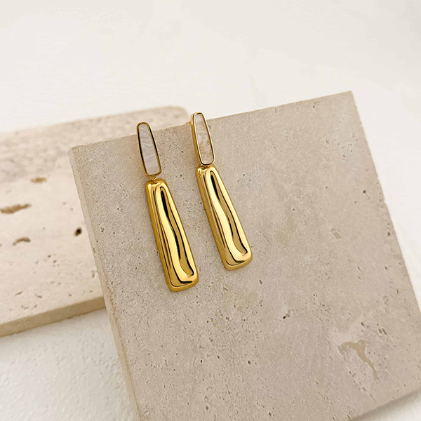 Σκουλαρίκια από ανοξείδωτο ατσάλι, σε χρυσή απόχρωση και λευκή λεπτομέρεια